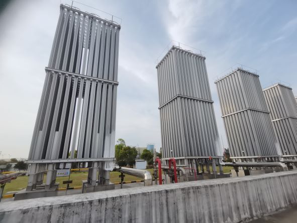 臺(tái)州華潤(rùn)燃?xì)庥邢薰舅鶎俸I液化天然氣(LNG)儲(chǔ)配站位于臺(tái)州市路橋區(qū)金清鎮(zhèn)濱海工業(yè)區(qū)十條河以西,由公司運(yùn)行管理部進(jìn)行管理。儲(chǔ)配站2013年8月建成,2013年9月投入試運(yùn)行,站區(qū)原有4個(gè)150m³LNG儲(chǔ)罐,總存儲(chǔ)量為250噸,8臺(tái)氣化量3000Nm³/h的空溫式氣化器,設(shè)計(jì)小時(shí)最大供氣量為12000Nm³/h。