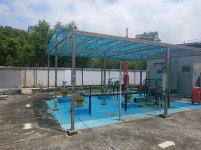 加油站安裝有汽油卸油和加油油氣回收系統(tǒng)以及三次油氣回收系統(tǒng)。加油加氣區(qū)設置罩棚,罩棚為膜結構。罩棚下設置4臺雙油品四槍潛油泵式加油機(汽油加油槍帶油氣回收)和2臺CNG雙槍加氣機;埋地油罐區(qū)設有3只30 m³埋地臥式單層鋼制油罐(油罐均為車道罐,設置防滲承重罐池),分別為2只95#汽油罐,1只92#汽油罐;加氣部分設置容積共24m³的CNG 儲氣井4 口,脫水裝置1 套,調(diào)壓計量撬1套、壓縮機2 臺(1 用1 備);根據(jù)《汽車加油加氣加氫站設計標準》GB50156-2021“第3.0.15條”的規(guī)定識別,該站油罐總?cè)莘e為90m³,常規(guī)CNG 加氣儲氣設施總?cè)莘e為24 m³,富陽加油站屬于二級加油加氣合建站。