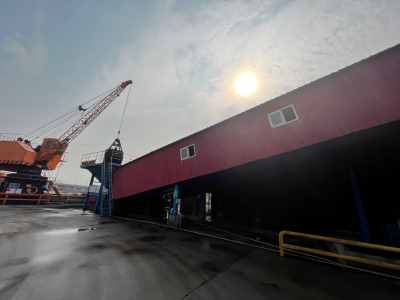 為了配套企業(yè)40萬噸差別化纖維項目的原料運輸,企業(yè)在廠區(qū)南側(cè)設(shè)有自備碼頭。該碼頭布置在廠區(qū)南側(cè),李湖南線宣杭鐵路橋附近航道轉(zhuǎn)彎段北側(cè),共設(shè)挖入式港池2個,其中東側(cè)臨近104國道李湖大橋的為港池一(1#泊位、2#泊位、3#泊位),西側(cè)臨近宣杭鐵路橋的為港池二(設(shè)有4#泊位、5#泊位、6#泊位)。