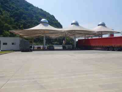 加油站設(shè)置汽油卸油和加油油氣回收系統(tǒng)。加油區(qū)設(shè)置加油罩棚,罩棚為鋼結(jié)構(gòu)罩棚。罩棚下設(shè)置2臺雙油品四槍電腦稅控加油機,2臺單油品(柴油)四槍電腦稅控加油機(罐區(qū)潛油泵供油)以及1臺尿素液加注機;埋地油罐區(qū)設(shè)有4只30m³的埋地臥式單層鋼制油罐(非車道罐),設(shè)防滲罐池。其中30m³汽油罐2只(分別為92#汽油罐、95#汽油罐),2只30m³柴油罐,油罐總?cè)莘e折算為90m³(柴油罐折半計入),根據(jù)《汽車加油加氣加氫站技術(shù)標(biāo)準(zhǔn)》GB50156-2021的相關(guān)規(guī)定,該加油站為三級加油站。加油站充電區(qū)設(shè)有1套分體式一機四樁綜合充電系統(tǒng)(功率360kW),根據(jù)《綜合供能服務(wù)站建設(shè)規(guī)范》(DB33/T2136-2018)的規(guī)定,充電區(qū)塊規(guī)模為Ⅳ級,屬于三級綜合供能服務(wù)站。